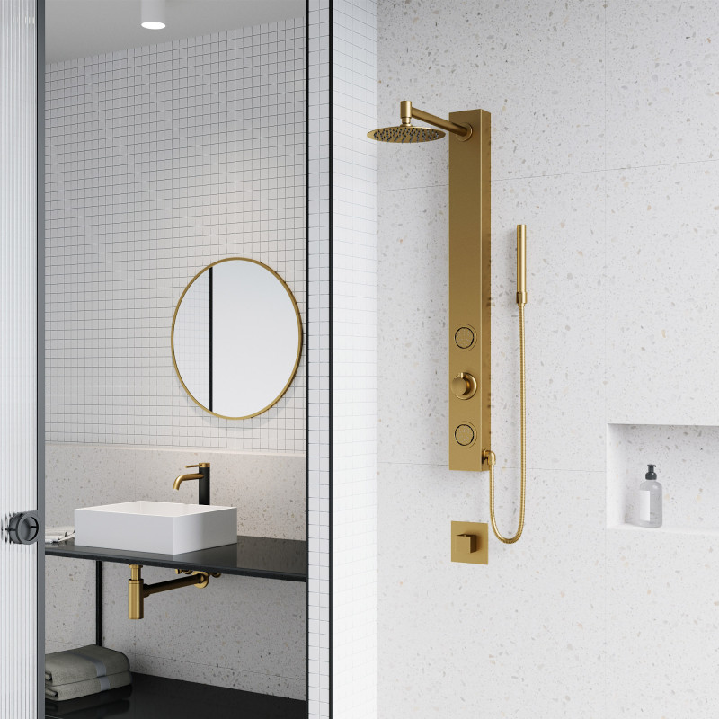 Vigo shower panel systems add style and luxury to your shower. Each system is constructed from solid stainless steel designed to be lightweight, durable and corrosion resistant. With many styles and features to choose from, panels include massaging jets for a relaxing shower experience.