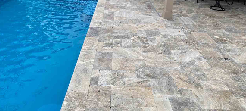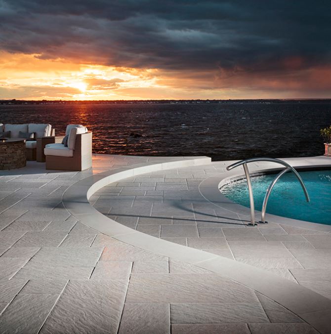 With natural stone pavers, you can create looks ranging from rustic charm to sophisticated elegance with a variety of colors and designs. Available in both thick and thin, we recommend either a tumbled or brushed and chiseled finish to get the best traction for wet feet.