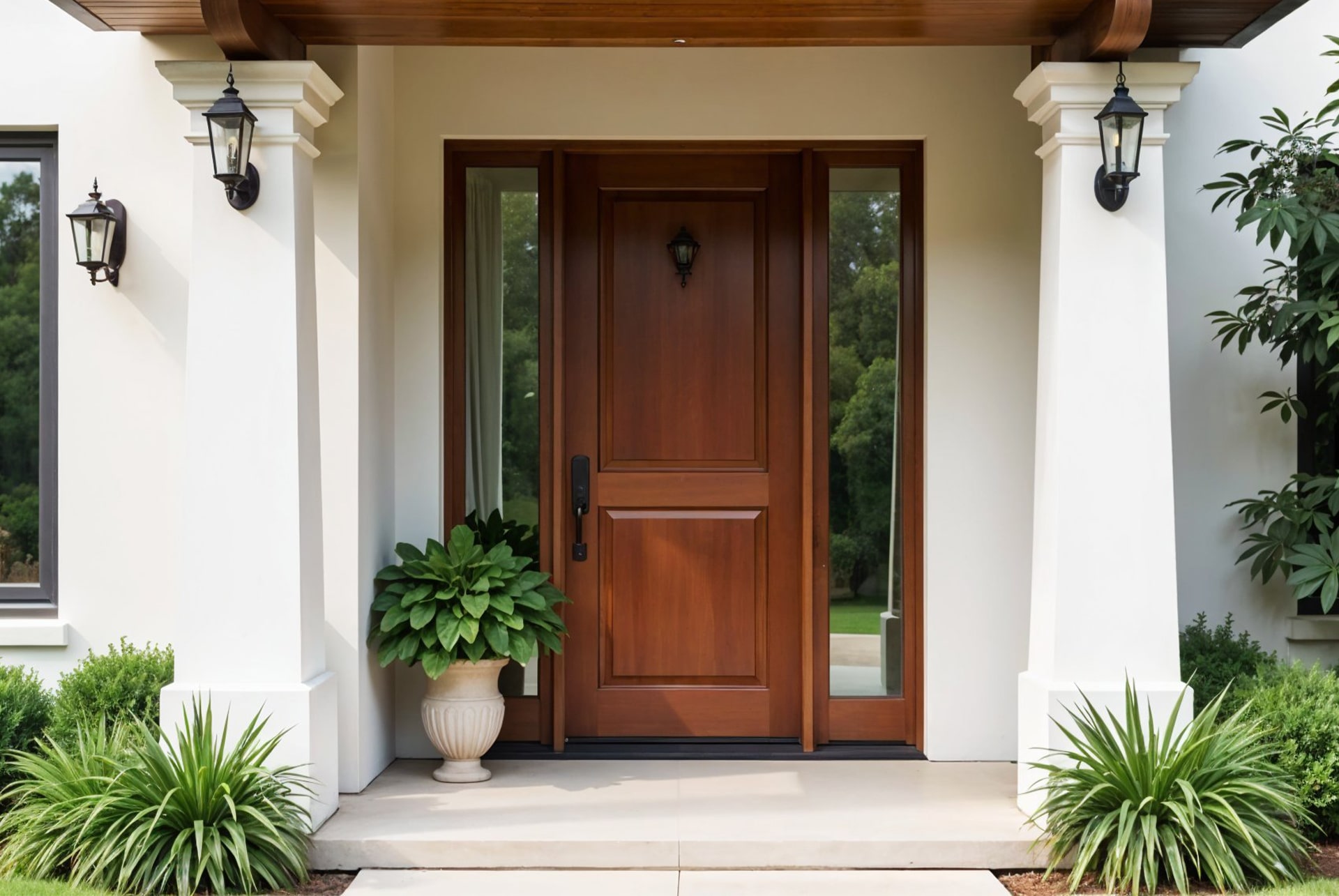 The entryway is usually the first thing people notice about your home. That’s why an attractive yet functional entry door adds curb appeal and value. For both beauty and practicality, fiberglass exterior doors are unrivaled. Fiberglass doors aren’t prone to warping, shrinking, or corroding. This is important in a coastal climate where building materials must stand up to wind, rain, salt air, heat, and humidity. Fiberglass doors come in many attractive styles from smooth and painted to wood-grained and stained. These beautiful doors look like real wood doors.